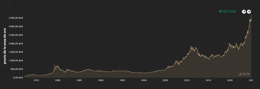 El oro ha sido siempre un activo refugio en períodos de crisis. En 2022, durante la invasión de Ucrania y el fuerte aumento de los precios de la energía, el rendimiento del oro superó al de los títulos de renta fija y variable, registrando una rentabilidad real positiva a pesar de un entorno inflacionista. Anteriormente, en la década de 1970, el oro había demostrado ya su capacidad para brindar protección contra la inflación y las crisis monetarias.